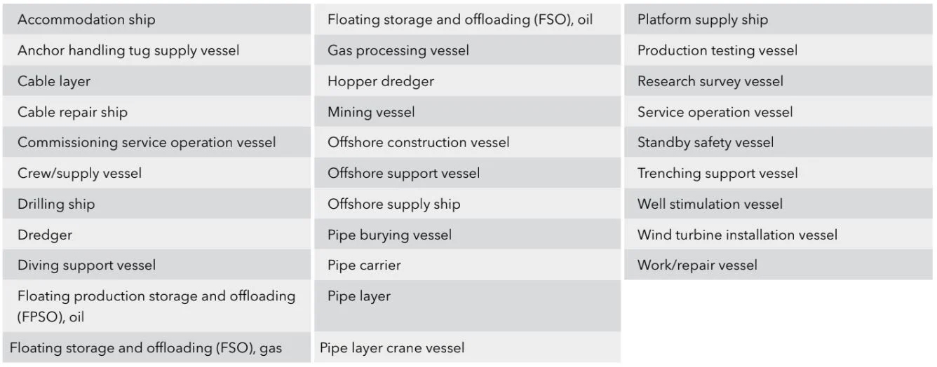 In its introduction to the new Delegated Regulation, the Commission has acknowledged that multiple players in the industry argued for a negative definition where only those vessels not included should be listed. However, the Commission has found that this will make it too broad and has instead provided a comprehensive list over the vessel types to be included.